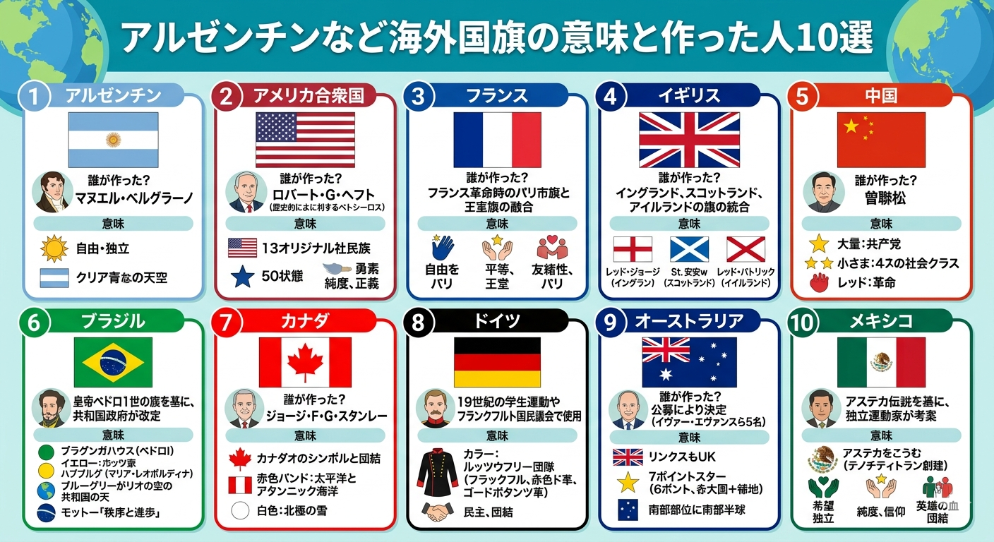 次にオリンピックや国際会議などで国旗を見かけたときは、ぜひその背景にあるストーリーを思い出してみてください。きっと、その国が今まで以上に身近に感じられるはずですよ。