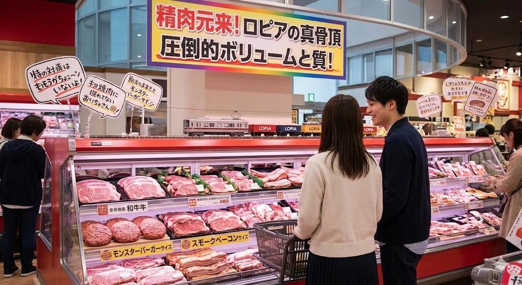 - 圧倒的な「肉」の質と量: 元々精肉店からスタートしたロピア。スーパーの域を超えた塊肉や希少部位が驚きの価格で並びます(画像2)。