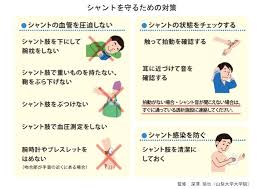 - シャント側の腕を圧迫しない(重い荷物を持たない、腕枕をしない)。