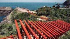 - 元乃隅神社(もとのすみじんじゃ) 123基の朱色の鳥居が、海に向かって連なる絶景スポットです。参道を進んでいくと、美しい海と鳥居のコントラストに目を奪われます。ユニークな賽銭箱も必見です。