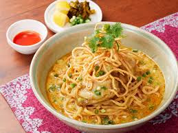 カオソーイ(チェンマイ風カレーラーメン) 揚げた麺と茹でた麺の食感が楽しい、クリーミーなカレースープの麺料理です。チェンマイ観光の際は外せません。