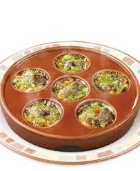 エスカルゴのオーブン焼き おうしゅう産のエスカルゴをガーリックバターで。セットの「プチフォッカ」と一緒に、ソースまでのこさず楽しむのが通の食べ方です。