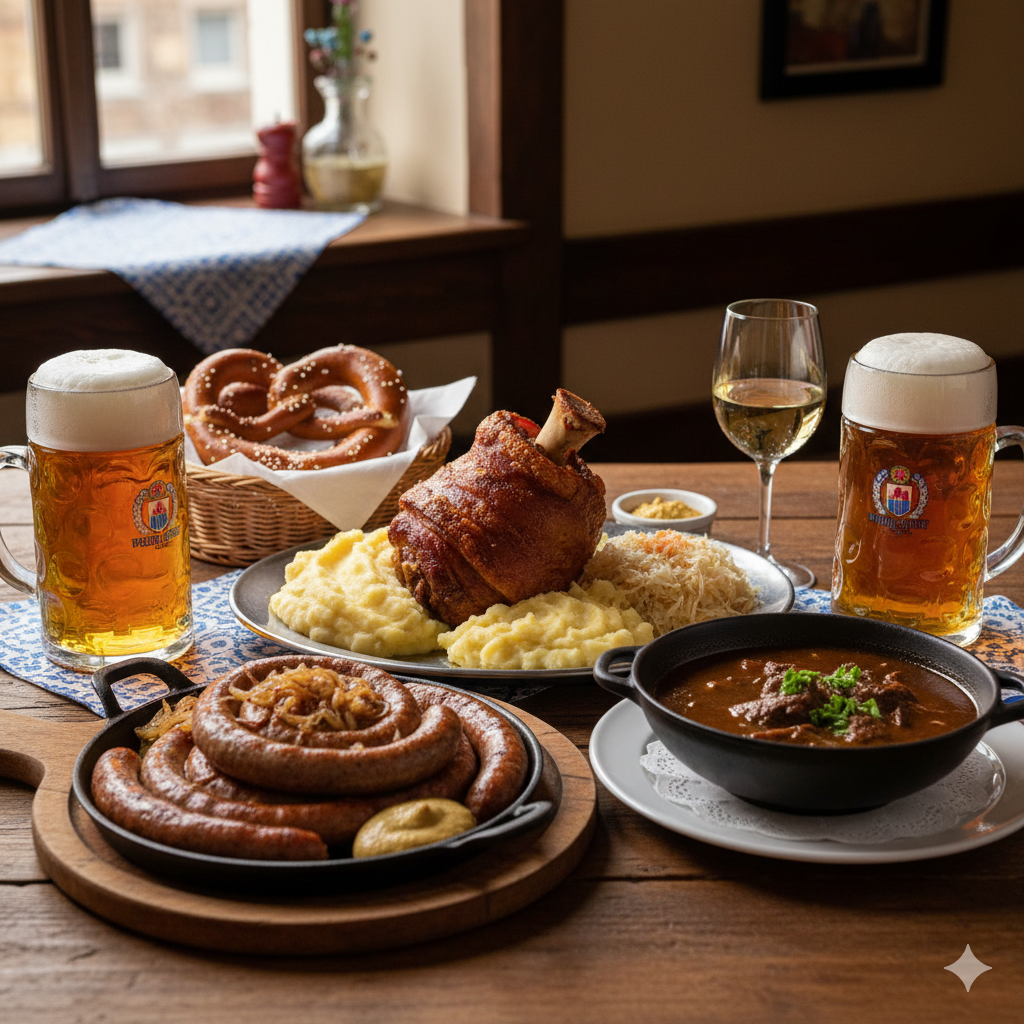 ドイツ料理を一言で表すなら、「素材の味を最大限に活かした、お腹と心を満たす料理」。 広大な土地で育てられた肉、じゃがいも、そして厳しい冬を越すために発達した保存食の文化が、ドイツの食卓のベースになっています。