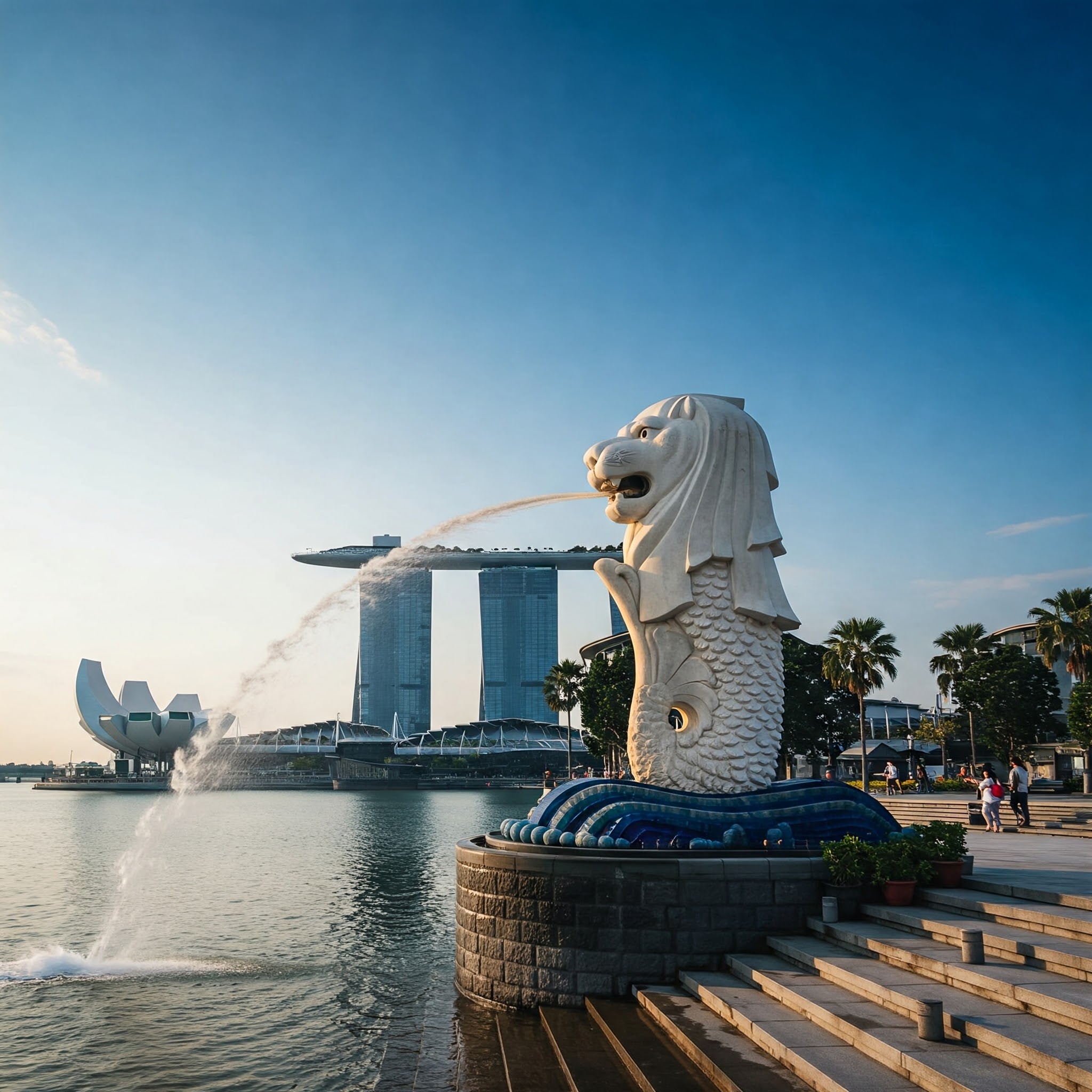 このユニークなデザインには、シンガポールの歴史と伝説が深く関わっています。魚の尾は、シンガポールの古名「テマセク(海の町)」に由来し、かつて漁村であった歴史を象徴しています。一方、ライオンの頭は、14世紀にスマトラの王子サン・ニラ・ウタマがこの地を訪れた際、ライオンを目撃したという伝説にちなんでいます。