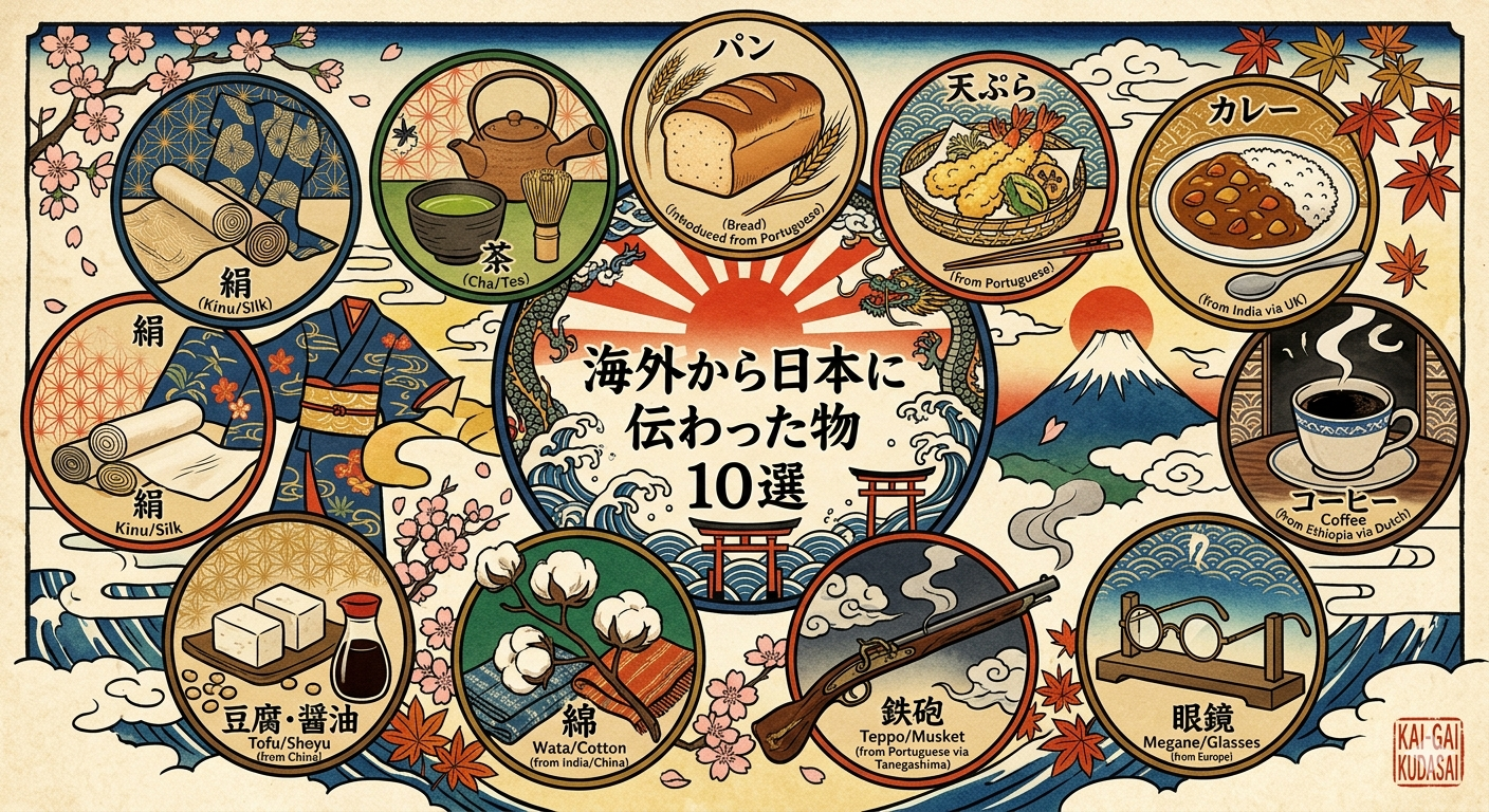 今回は、古代から近代にかけて日本に伝わり、今や日本の文化として定着している10個のアイテムを厳選して教えますね。その意外なルーツを知ることで、いつもの景色が少し違って見えるかもしれません。