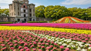 広島市中心部を彩る大規模イルミネーション。毎年テーマが変わり、幻想的な光の世界が広がります。特に平和大通りは、光のトンネルやオブジェなど見どころ満載です。