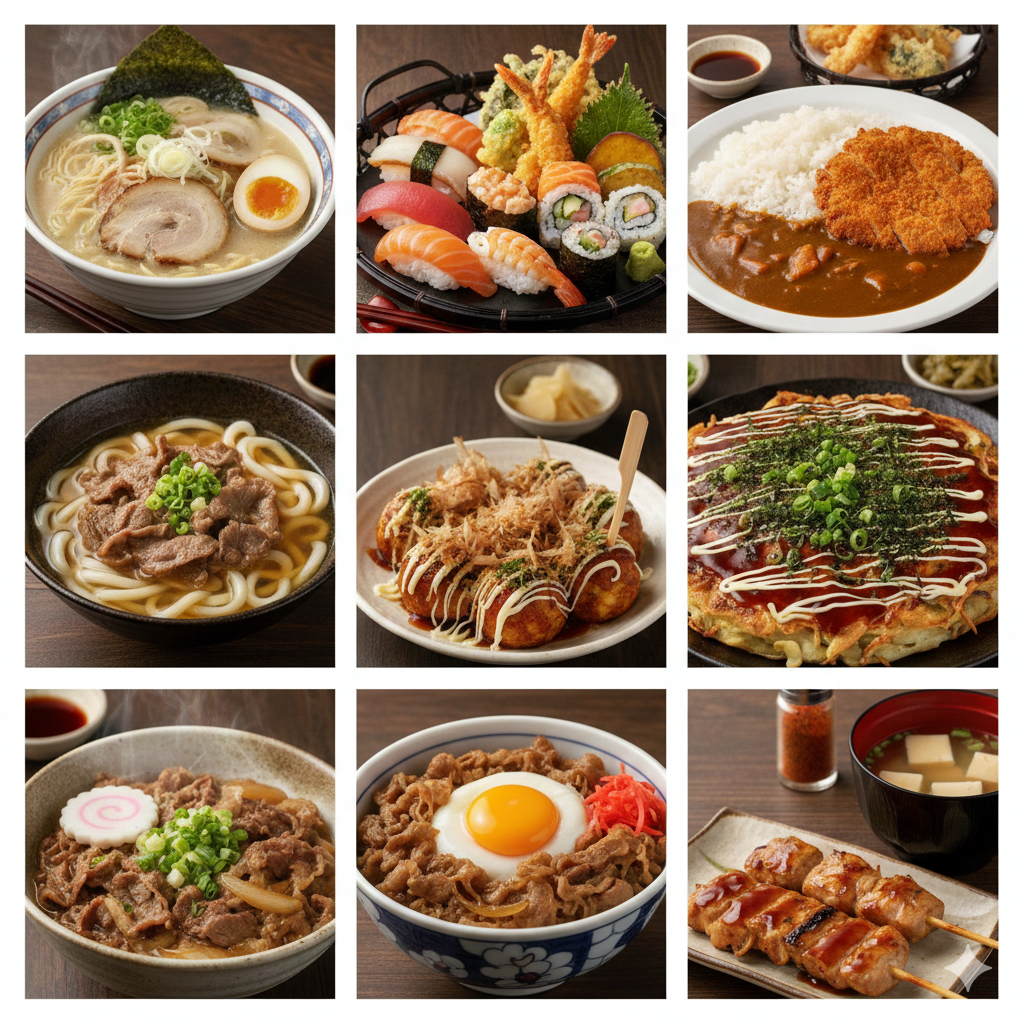 もはや国民食を超えて「宗教」に近い熱狂を生んでいるのがラーメンです。 醤油、味噌、塩、豚骨といった基本のスープから、家系、二郎系、魚介つけ麺まで、その進化は止まりません。一杯の丼の中に、店主のこだわりが凝縮された小宇宙。ランチタイムにラーメン屋に行列を作る姿は、日本の日常風景です。