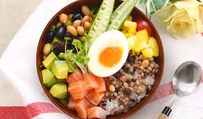 - サーモンとアボカドのブッダボウル アスタキサンチンと良質な脂質(オメガ3)が、肌の潤いとハリを保ちます。