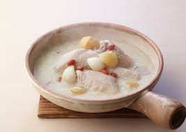 - 豆乳仕立ての薬膳参鶏湯(サムゲタン) コラーゲンたっぷりの鶏肉を、イソフラボンを含む豆乳で煮込んだ美肌温活メニューです。