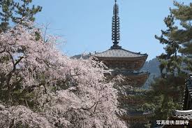 渡月橋を背景にした桜は、京都らしい情緒に溢れています。