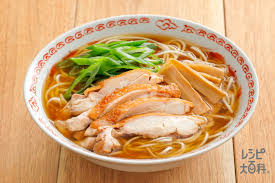 日本のうどんやラーメン、中国の麺料理が融合したと言われ、海老出汁の優しいスープが特徴です。