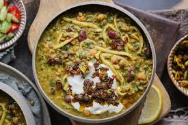 豆やハーブがたっぷり入った栄養満点の麺入りスープで、お祝いの席にも欠かせません。