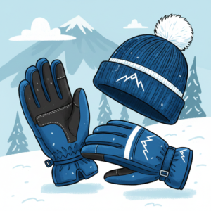 - 手袋と帽子:予備を含めて準備するのがおすすめ。特に手袋は雪で濡れやすく、冷える原因になる。防水タイプを選びつつ、替えがあると安心。ネックウォーマーも、子ども用に一つあると寒さ対策にもなる。