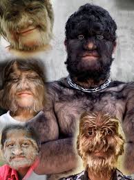 「顔や体全体が濃い毛で覆われる」 手のひらと足の裏を除く、全身が長い毛で覆われる非常に珍しい遺伝性疾患です。