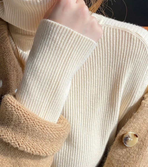 厚手のニット1枚よりも、薄手の機能性インナー+シャツ+カーディガンのように**「空気の層」**を重ねる方が保温性は高まります。