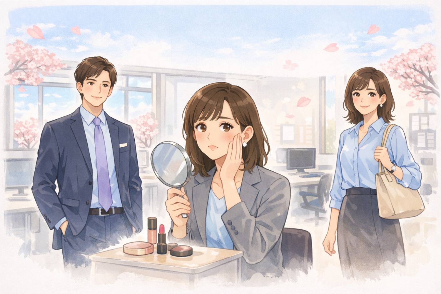 淡いブルーやブルーグレーは、ビジネス感を保ちつつ春らしさを出せます。